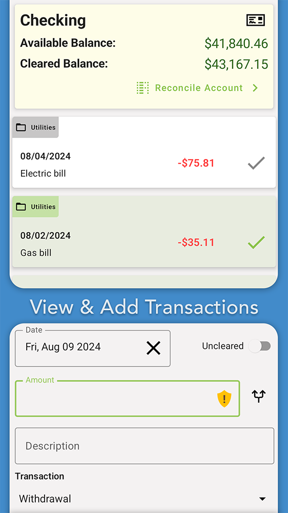 Manage your money on the go with the ClearCheckbook app for Android. Whether you're checking balances, adding transactions, or sticking to a budget, everything you need is right at your fingertips. Download the app from the Google Play Store and stay connected to your finances, wherever you are.
