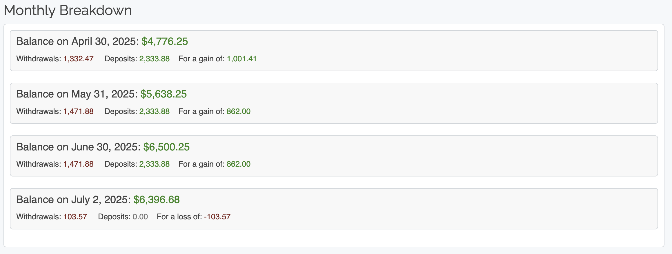 The final piece of information shown is an end-of-month breakdown that shows how much will be spent and saved based on the above transactions.