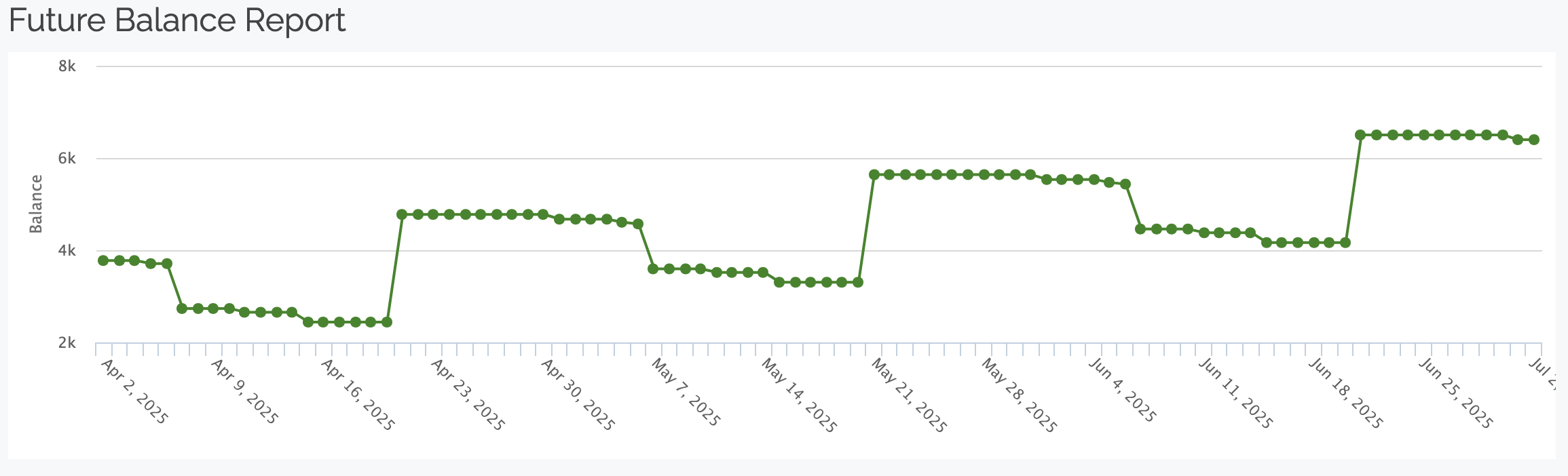 Once your balances are projected, the first block of information you'll see is a report that shows the balance over the given timeframe.