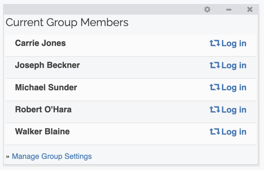 The second way is to enable the Group Members gadget on the Account Dashboard. This will show all of your group members with the same Log in link that you see on the Premium Groups settings page. To install the gadget, click the Add New Gadget link next to the Account Dashboard header. After that, select the Group Members gadget.
