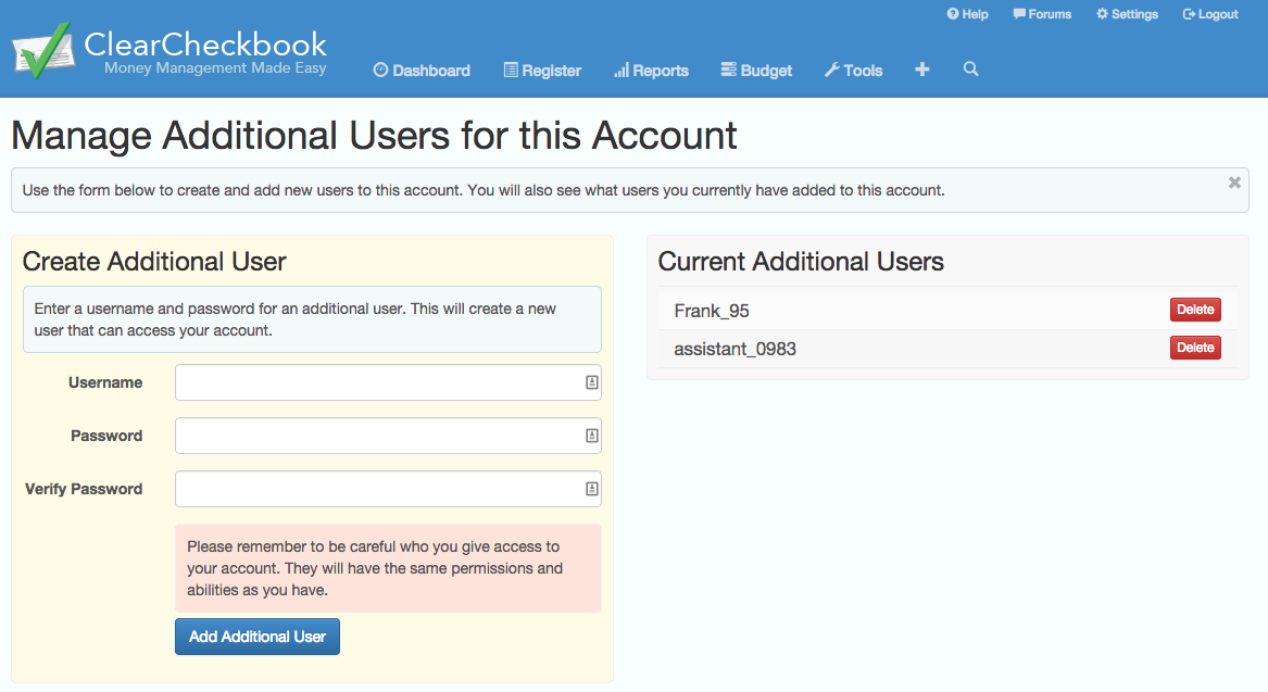 Ability to add additional users to your account with custom permissions |
