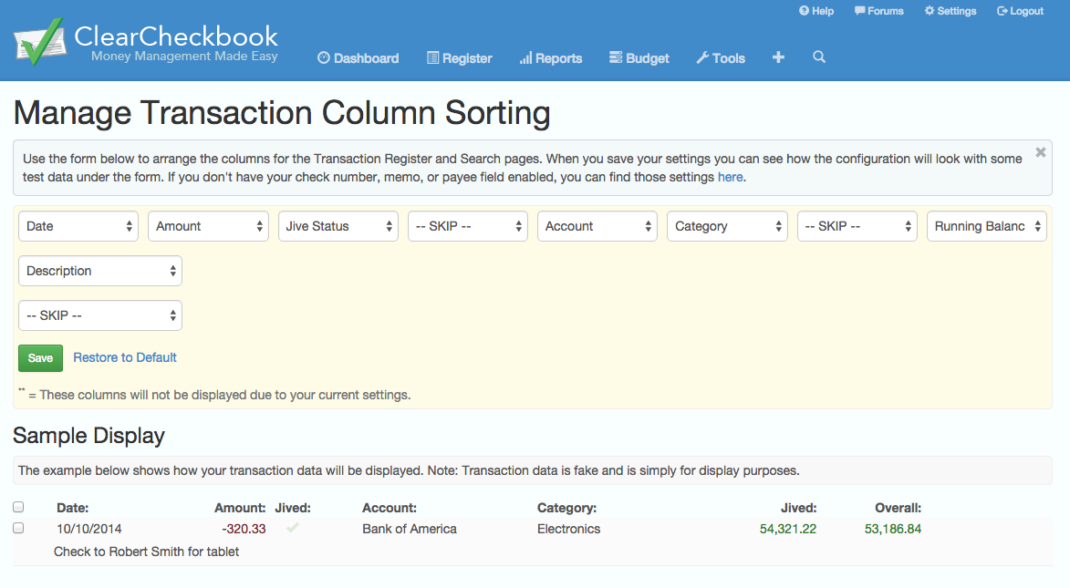 Transaction Register Customization |