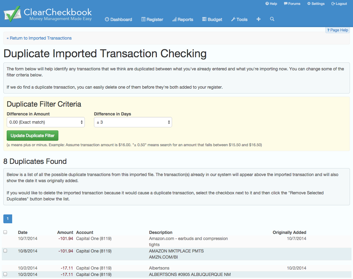 Search for duplicate transactions in your register |