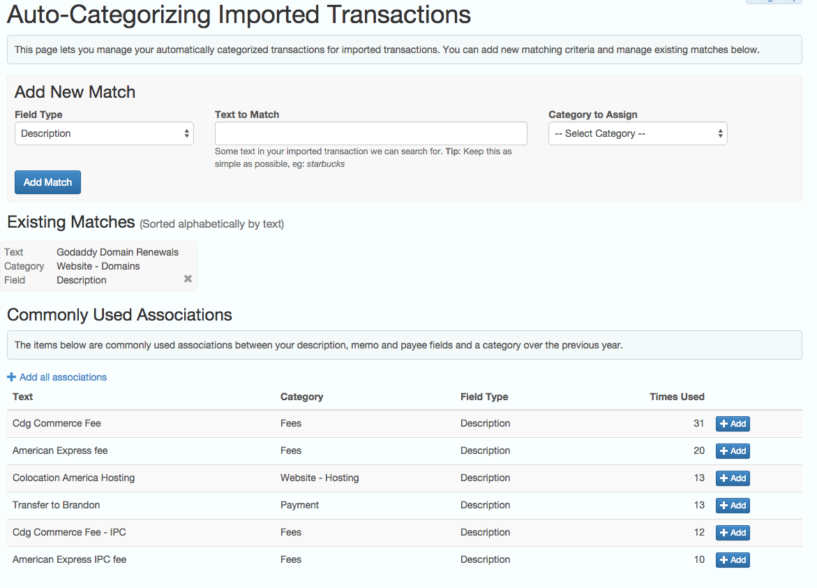 Automatic categorization of imported transactions |