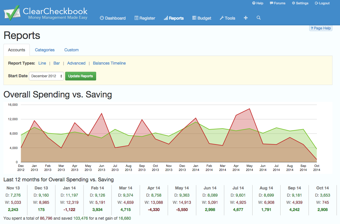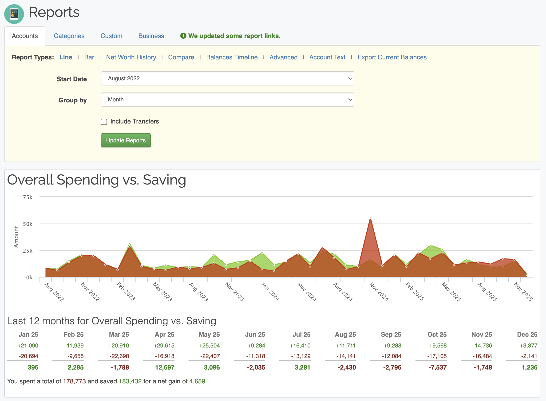 Balances Timeline (view your overall balance over time) |