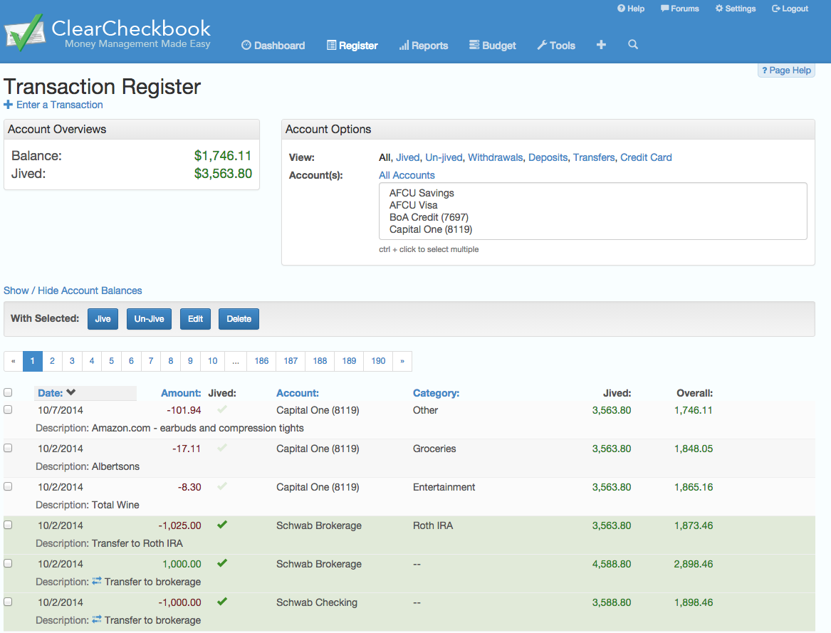 View multiple accounts on the transaction register |