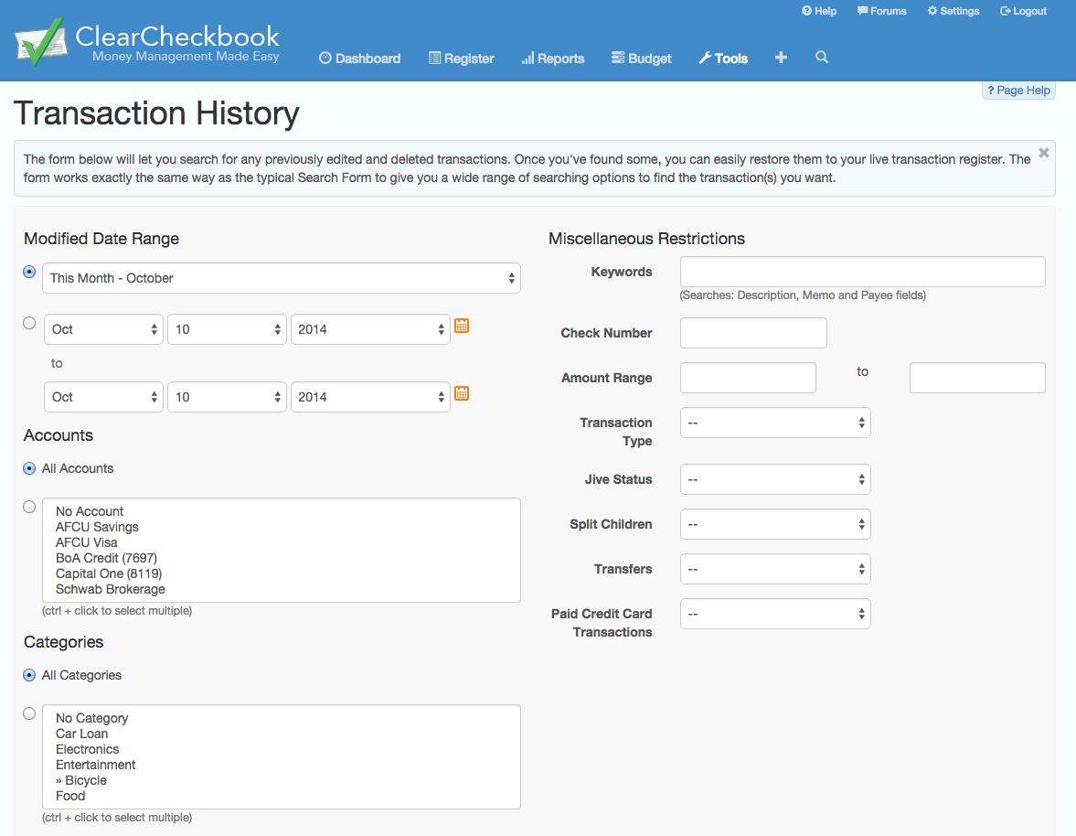 Transaction History (undo deleted or edited transactions) |